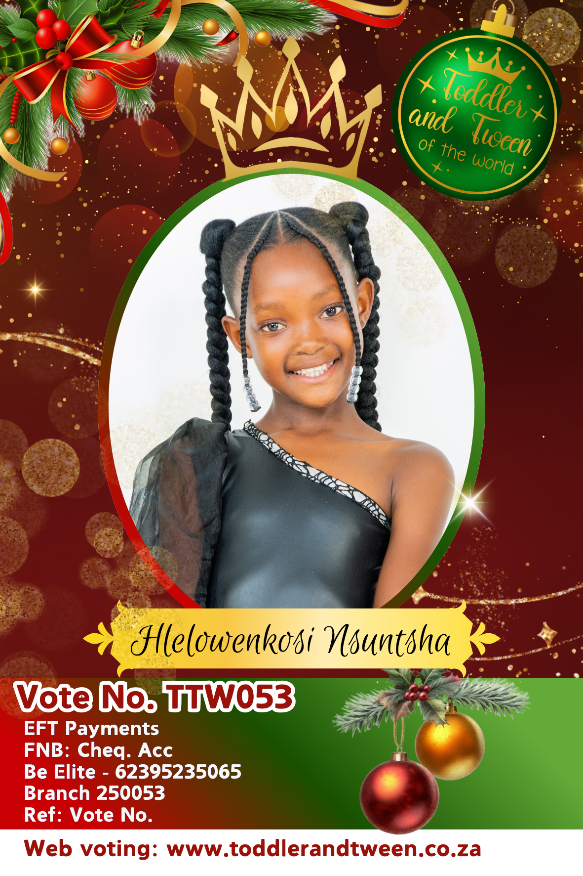 Vote for Hlelowenkosi Nsuntsha, use code: TTW053
