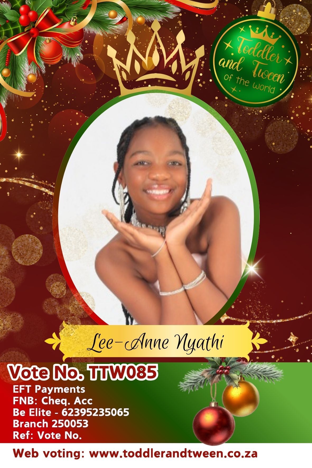 Vote for Lee-Anne Nyathi, use code: TTW085