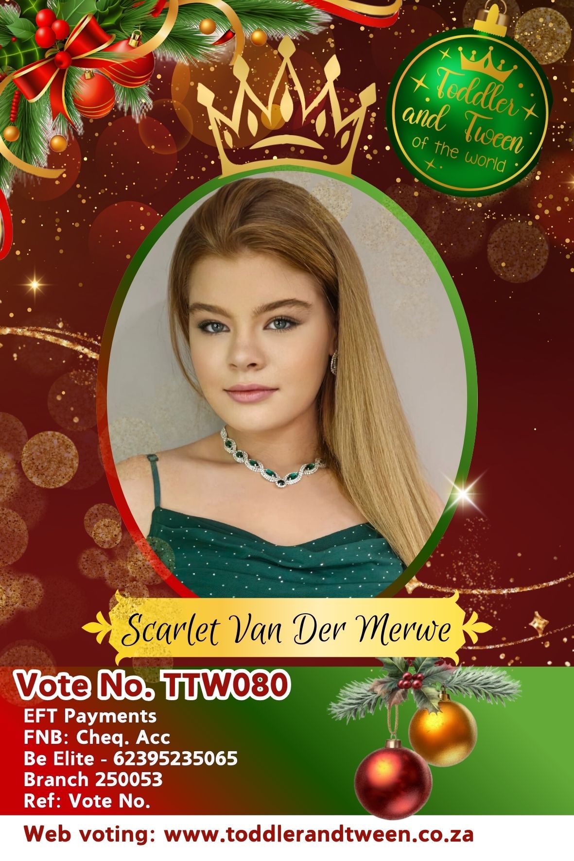 Vote for Scarlet van der Merwe, use code: TTW080