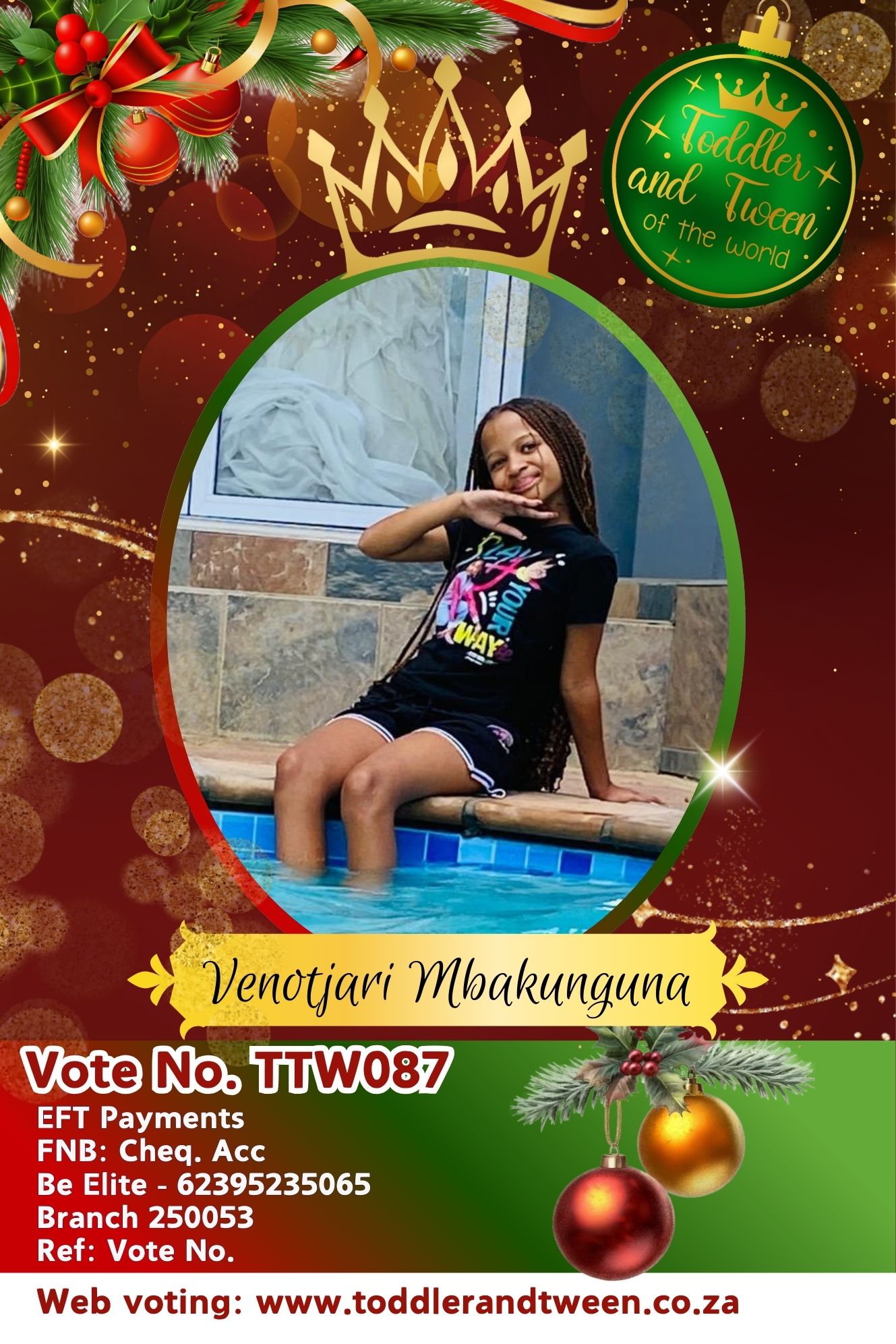 Vote for Venotjari Mbakunguna, use code: TTW087