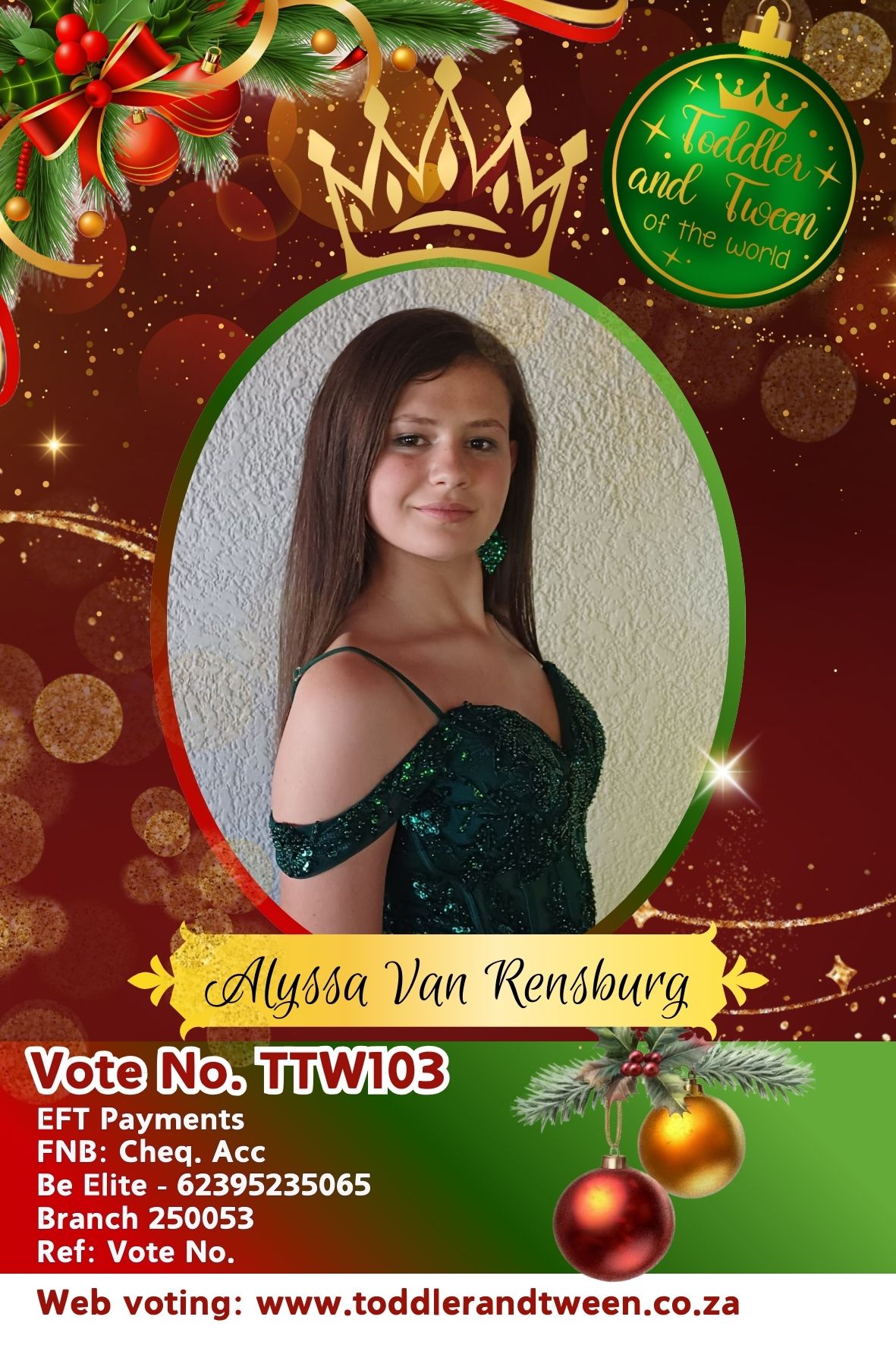 Vote for Alyssa Van Rensburg, use code: TTW103