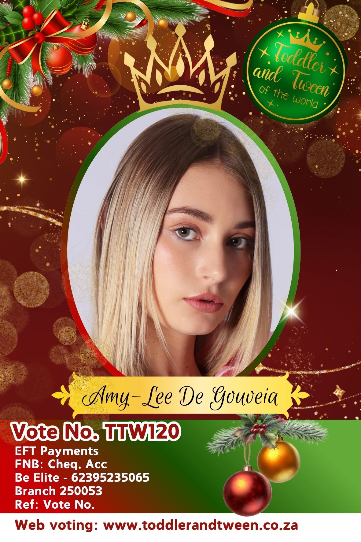 Vote for Amy-Lee De Gouveia, use code: TTW120