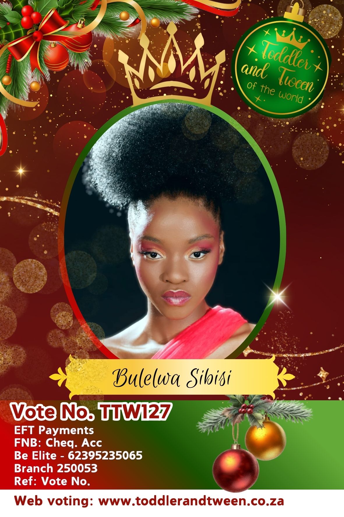 Vote for Bulelwa Sibisi, use code: TTW127