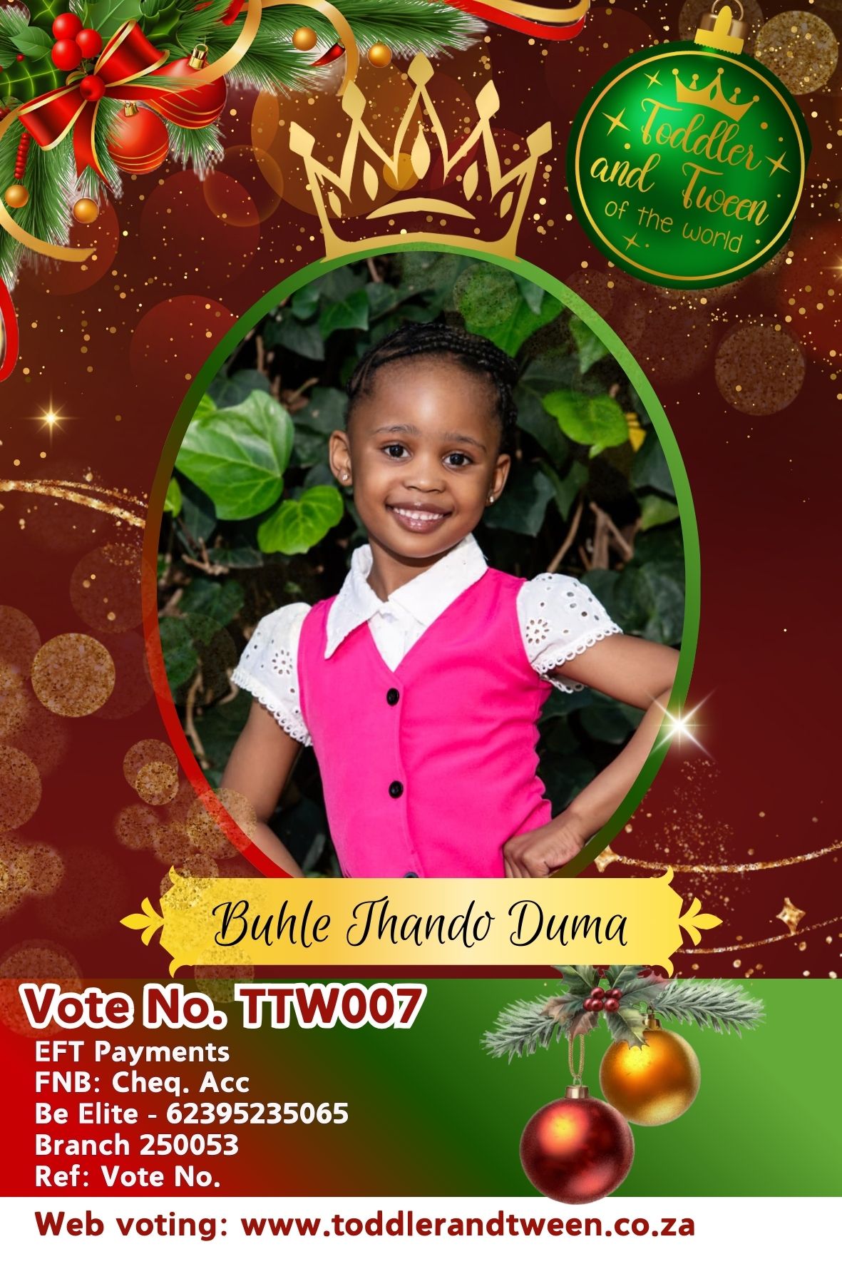 Vote for Buhle Thando Duma, use code: TTW007